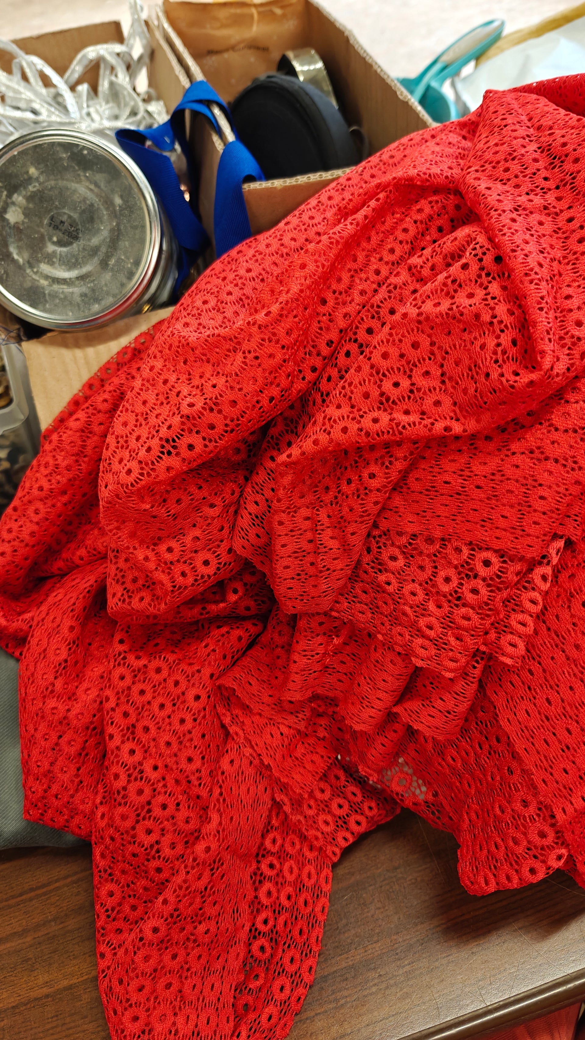- Dentelle ajourée rouge 3 mètres