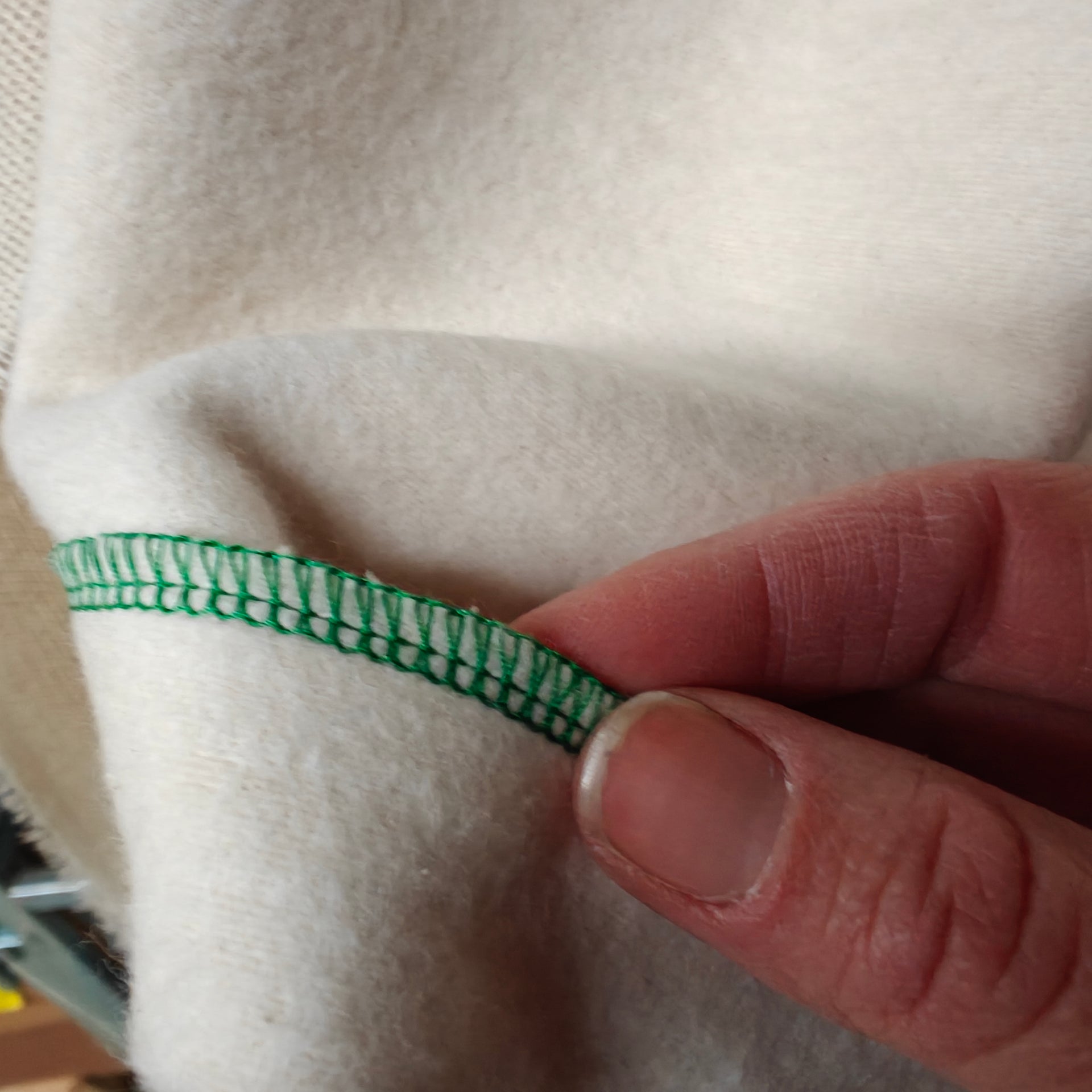 Bords finis en surjet vert